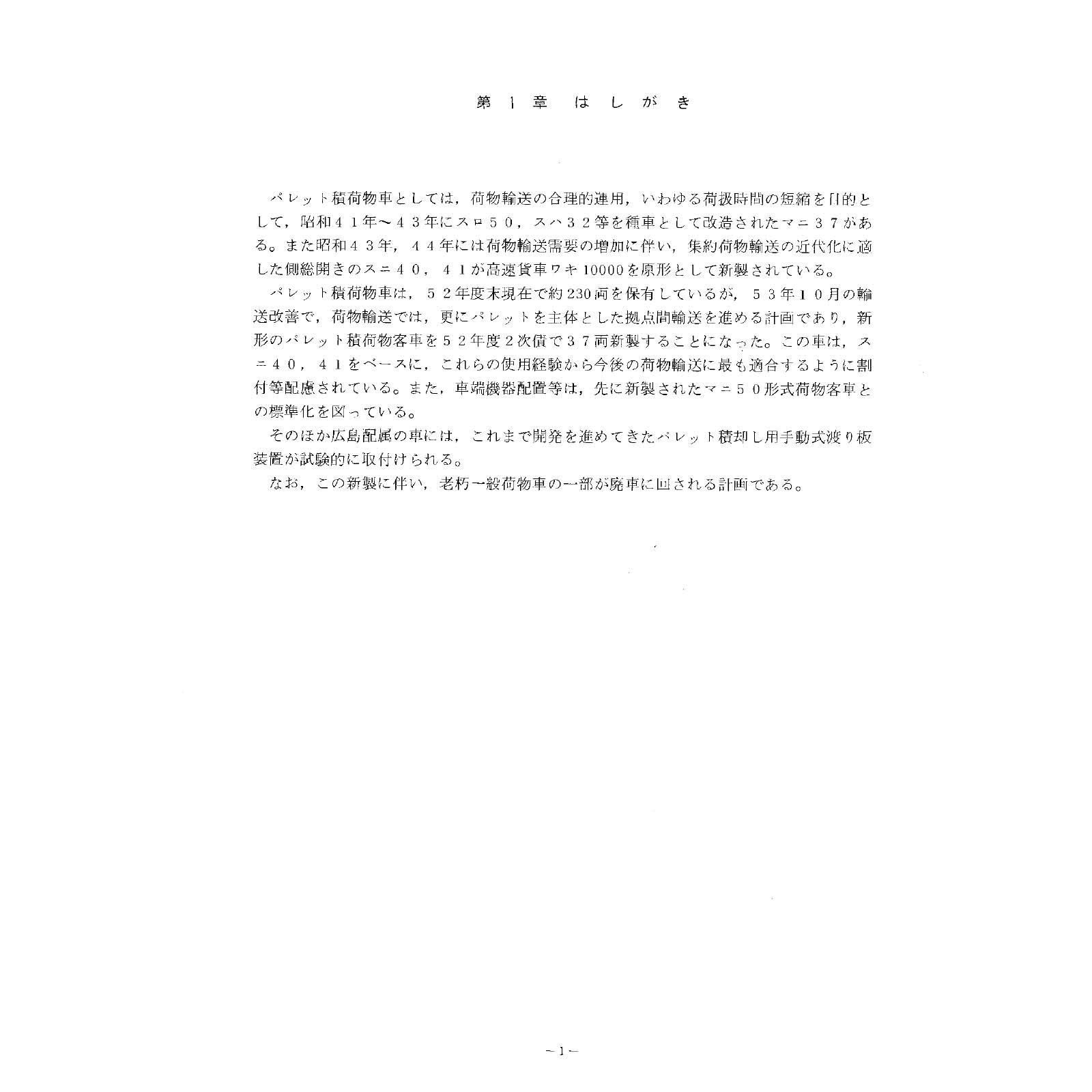 物流業界の一貫パレチゼーションの流れをくみ、昭和41年以降パレット積荷物車であるマニ37やスニ40・スニ41が製造されました。