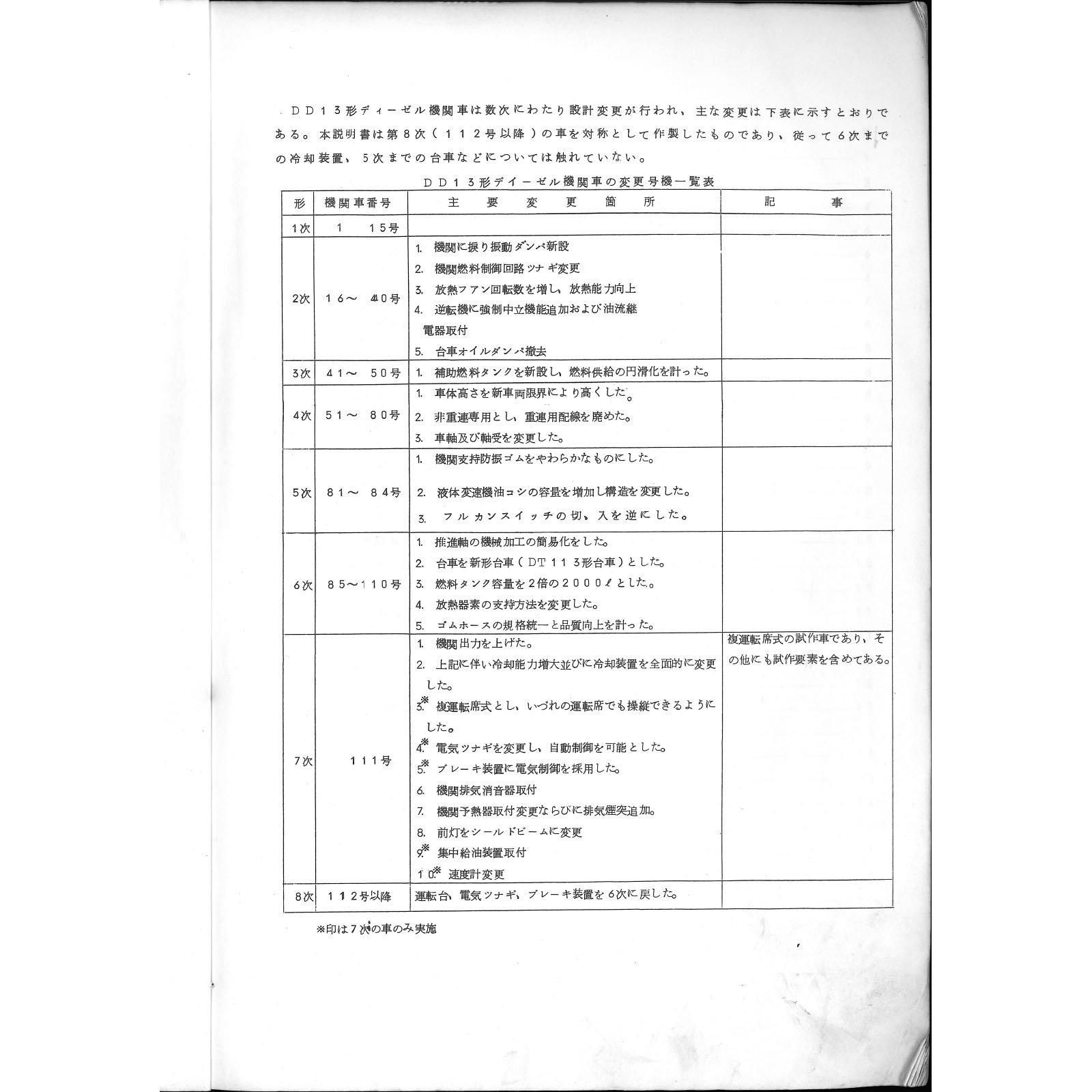 この説明書はその8次車のものであるが、7次車以前についても設計変更点などが記載されています。